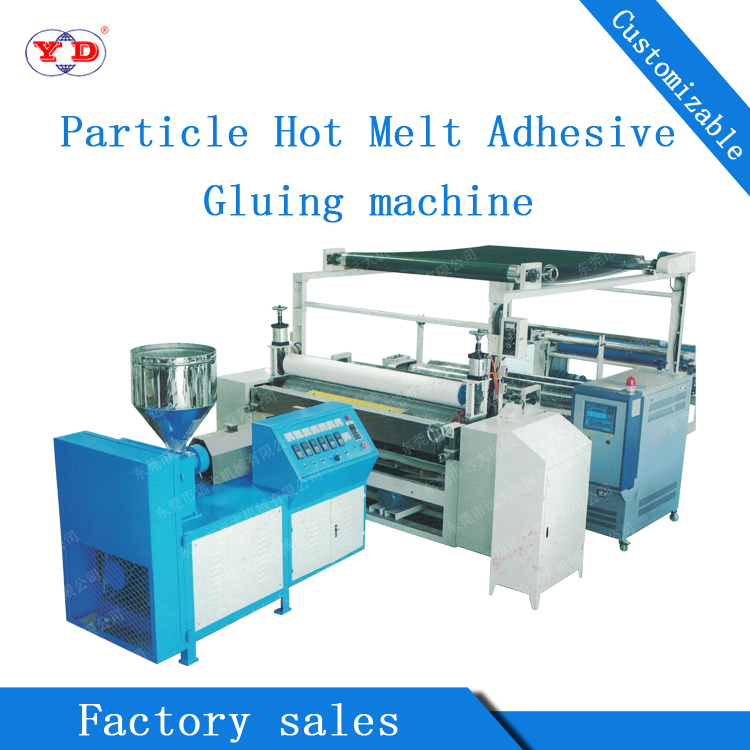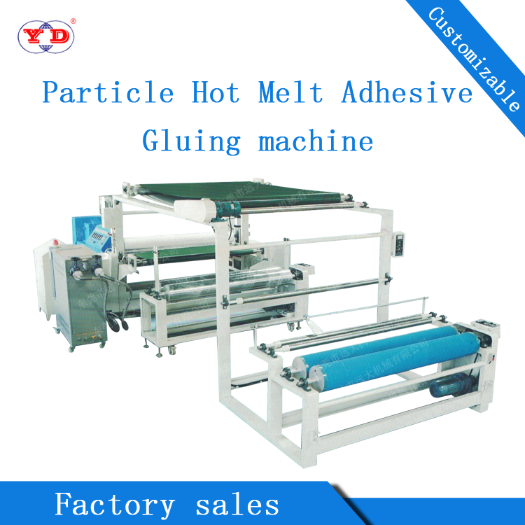 Particle (hot melt glue) gluing machine is mainly used for underwear sponge and cloth superparticle glue, clothing and shoe materials, industrial fabrics, textile and health products, including profiled paper, non-woven fabrics, cotton fabrics, and fiber fabrics. Applicable to underwear after glue setting, clothing (jacket coat, shirt, etc.), shoes, insoles, handbags, medical masks, gloves and other fields. The advantages of traditional spraying quick-drying gum are fast speed (40 meters per cent), environmental protection, odorless, gum-saving (about 18 grams per yard), 100% pure gum without solvent, high stability and easy operation.