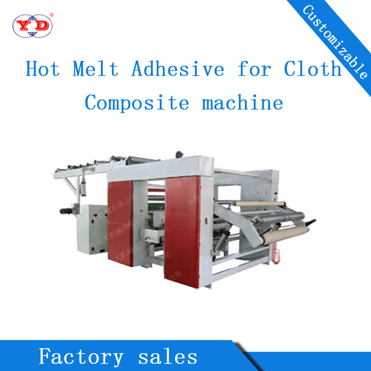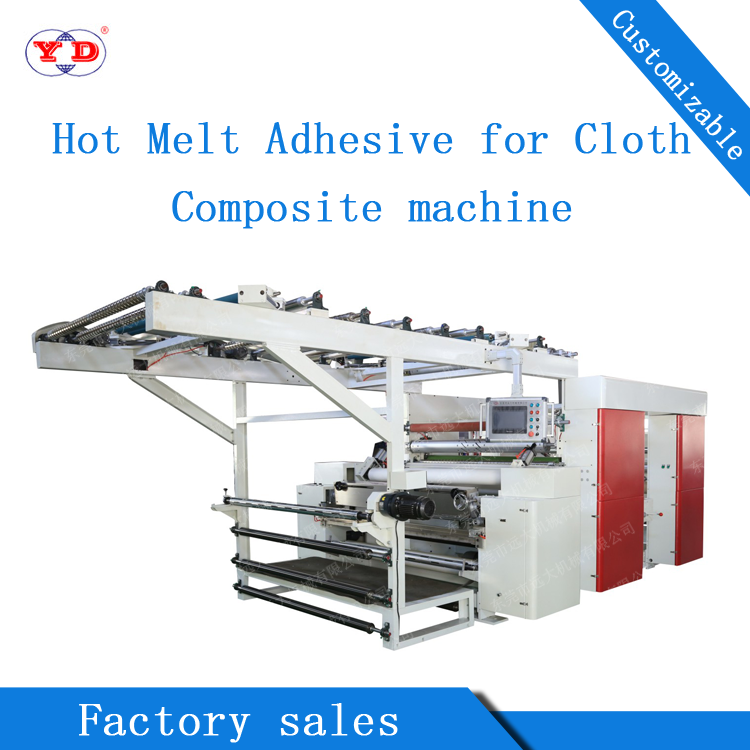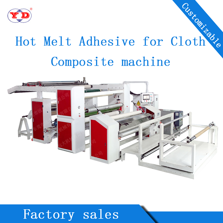 The cloth hot melt adhesive compound machine can be used for the compounding of cloth, TPU and PE plastic film to produce various functional cloth products. It can be used for the compounding of plain weaving, knitting, elastic cloth and cloth. It is suitable for garments, underwear, bedspread of household textiles, sofa, cloth for shoes, boxes and bags, industrial cloth, and cloth. Compound medical and health cloth. The advantages of this equipment and traditional compound machine are glue environmental protection, full automation, tension control, automatic edge alignment, product surface smoothing and edge neatness, PLC human-machine interface operation is simple, can access the characteristic data of each material, and completely realize the operation without a master.
