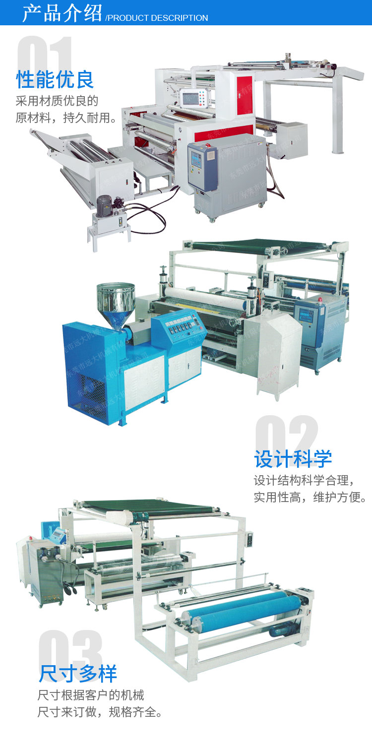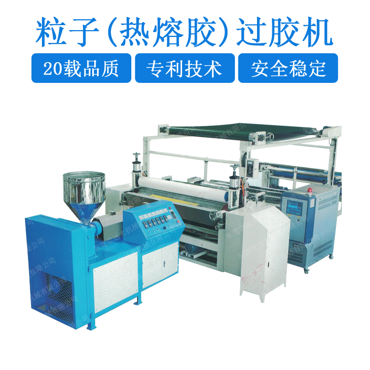 粒子(熱熔膠)過膠機主要用于內衣海綿和布料過粒子熱膠,服裝用布料及鞋材用布料,工業(yè)用布料,紡織衛(wèi)生產品,包括離型紙,無紡布,棉布,纖維織品的熱熔膠過膠。適用在內衣過膠后定型、服裝(夾克外套、襯衣等)、制鞋、鞋墊、手袋、醫(yī)用口罩、手套等領域。與傳統噴快干膠的優(yōu)勢在于速度快(40米/分種)、環(huán)保無氣味、省膠(用膠大約18克/碼)、100%純膠不含溶劑、高穩(wěn)定性易操作性。